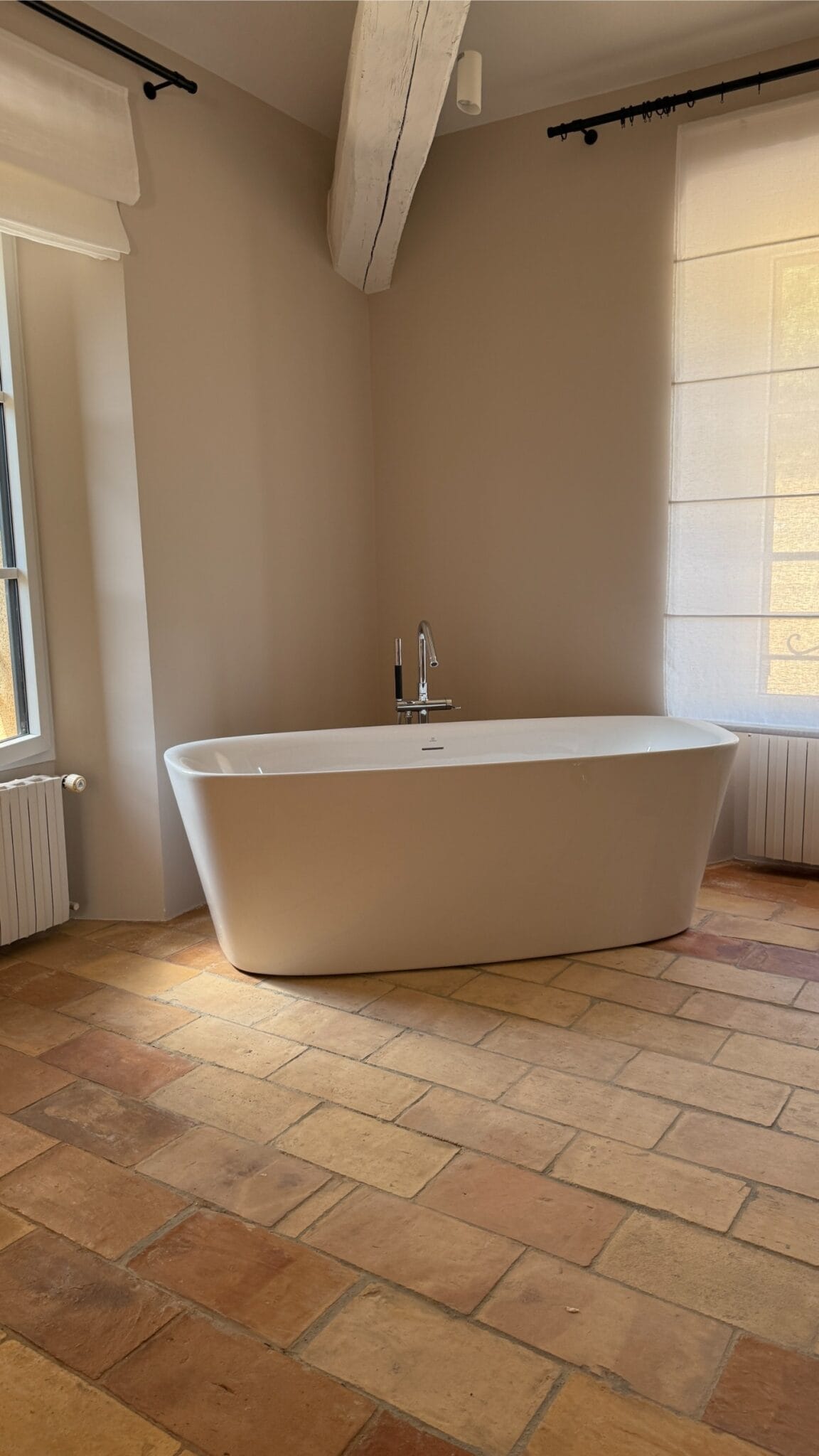 Pétillante et lumineuse, cette chambre est idéale pour les enfants ou amis accompagnants. Elle dispose de sa petite terrasse et d’une ambiance douce, en parfaite harmonie avec l’esprit du domaine.
